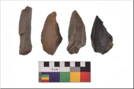 | Description / विवरण | There are n 4 utilized flake cores. There are multidirectional irregular scar pattern on both dorsal and ventral face of the flake cores. One is tapering at one end and three have sharp edges. |