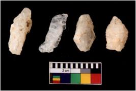 | Description / विवरण | There are n 4 flake cores. All of them are fully fluted flake cores without any trace of crested ridge flakes. Some are tapering at one end and some have sharp edges. |