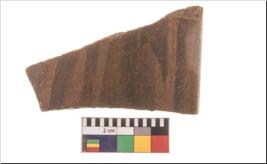 | Description / विवरण | Specimen of potsherd with decorative geometric painting, Type Black on Red ware . |