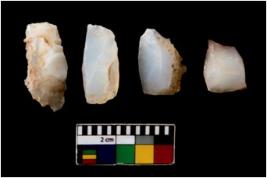 | Description / विवरण | There are n 4 of utilized worked cores. They show multidirectional irregular scar pattern. Three are tapering at one end where as two have flat base. |