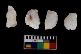 | Description / विवरण | There are n 4 flake cores. All of them are fully fluted flake cores without any trace of crested ridge flakes. Few are tapering at one end. Some have flat base while some have blunted edges. |