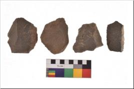 | Description / विवरण | There are n 4 utilized flake cores. There are multidirectional irregular scar pattern on both dorsal and ventral face of the flake cores. One has blunted edges and three have round edges. |