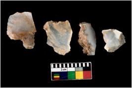 | Description / विवरण | There are n 4 of utilized worked cores. They show multidirectional irregular scar pattern. One has a flat base. All are having sharp edges. |