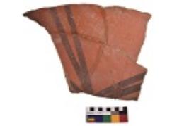 | Description / विवरण | Specimen of black on red ware with decorative geometric Two sets of two oblique bands in opposite direction painting. |