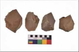 | Description / विवरण | There are n 4 utilized flake cores. There are multidirectional irregular scar pattern on both dorsal and ventral face of the flake cores. Two have sharp edges and two have blunted edges. |