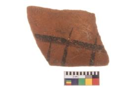 | Description / विवरण | Specimen of potsherd with decorative geometric painting, Type Black on Red ware . |