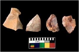 | Description / विवरण | There are n 4 of utilized worked cores. They show multidirectional irregular scar pattern. Three are tapering at one end and one has a flat base. All are having sharp edges. |