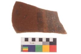 | Description / विवरण | Specimen of black on red ware with traces of decorative geometric parallel lines painting. |
