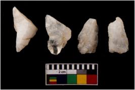 | Description / विवरण | There are n 4 flake cores. All of them are fully fluted flake cores without any trace of crested ridge flakes. Some are tapering at one end and some have sharp edges. |