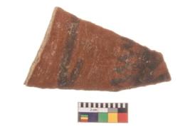 | Description / विवरण | Specimen of potsherd with traces of decorative geometric painting, Type Black on Red ware . |