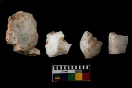 | Description / विवरण | There are n 4 of utilized worked cores. They show multidirectional irregular scar pattern. Two are having flat base. All have blunt edges. |