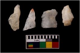 | Description / विवरण | There are n 4 flake cores. All of them are fully fluted flake cores without any trace of crested ridge flakes. Some are tapering at one end and some have sharp edges. |