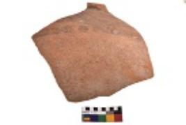 | Description / विवरण | Specimen of black on red ware with decorative geometric Grops of oblique strokes set in horizantal bands on the exteriox painting. |