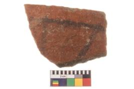 | Description / विवरण | Specimen of potsherd with traces of decorative geometric painting, Type Black on Red ware . |
