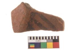| Description / विवरण | Specimen of potsherd with decorative geometric painting, Type Black on Red ware . |