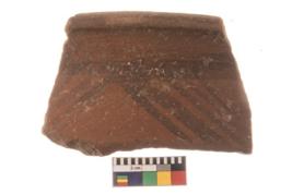 | Description / विवरण | Specimen of potsherd with decorative geometric painting, Type Black on Red ware . |