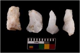 | Description / विवरण | There are n 4 flake cores. All of them are fully fluted flake cores without any trace of crested ridge flakes. Some are tapering at one end and some have sharp edges. |