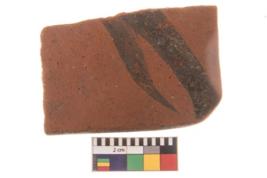 | Description / विवरण | Specimen of potsherd with traces of decorative geometric painting, Type Black on Red ware . |