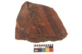 | Description / विवरण | Specimen of potsherd with traces of decorative geometric painting, Type Black on Red ware . |