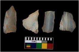 | Description / विवरण | There are n 4 of utilized worked cores. They show multidirectional irregular scar pattern. One has a broken tip. |