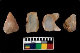 | Description / विवरण | There are n 4 of utilized worked cores. They show multidirectional irregular scar pattern. One is tapering at one end. |