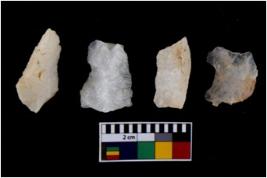 | Description / विवरण | There are n 4 flake cores. All of them are fully fluted flake cores without any trace of crested ridge flakes. Few are tapering at one end. Some have flat base while some have blunted edges. |