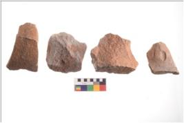 | Description / विवरण | There are n 4 utilized flakes; there are multi- directional irregular scar pattern on both dorsal and ventral face of the flakes. |