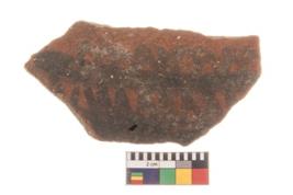 | Description / विवरण | Specimen of potsherd with decorative geometric painting, Type Black on Red ware . |