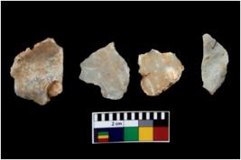 | Description / विवरण | There are n 4 of utilized worked cores. They show multidirectional irregular scar pattern. One is tapering at one end and is elongated. |