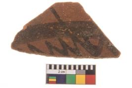 | Description / विवरण | Specimen of potsherd with decorative geometric painting, Type Black on Red ware . |