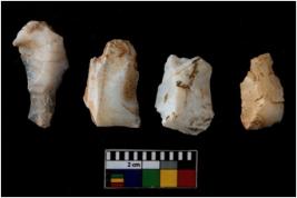 | Description / विवरण | There are n 4 of utilized worked cores. They show multidirectional irregular scar pattern. Two are tapering at one end and one has a flat base. All are having sharp edges. |