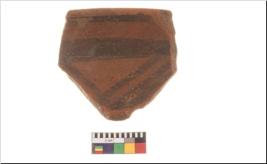 | Description / विवरण | Specimen of potsherd with decorative geometric painting, Type Black on Red ware . |