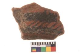 | Description / विवरण | Specimen of potsherd with decorative geometric painting, Type Black on Red ware . |