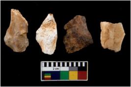 | Description / विवरण | There are n 4 of utilized worked cores. They show multidirectional irregular scar pattern. Two are tapering at one end. |