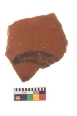 | Description / विवरण | Specimen of potsherd with traces of decorative geometric painting, Type Black on Red ware . |