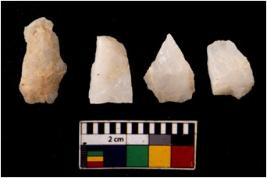 | Description / विवरण | There are n 4 flake cores. All of them are fully fluted flake cores without any trace of crested ridge flakes. Some are tapering at one end and some have sharp edges. |