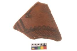| Description / विवरण | Specimen of potsherd with decorative geometric painting, Type Black on Red ware . |