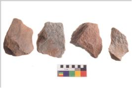 | Description / विवरण | There are n 4 utilized flakes; there are multi- directional irregular scar pattern on both dorsal and ventral face of the flakes. |