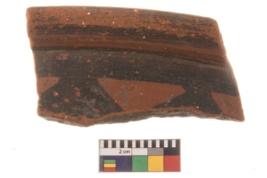 | Description / विवरण | Specimen of potsherd with decorative geometric painting, Type Black on Red ware . |