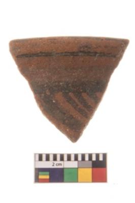 | Description / विवरण | Specimen of potsherd with decorative geometric painting, Type Black on Red ware . |