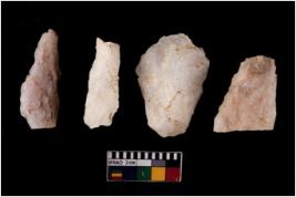 | Description / विवरण | There are n 4 flake cores. All of them are fully fluted flake cores without any trace of crested ridge flakes. Some are tapering at one end and some have sharp edges. |