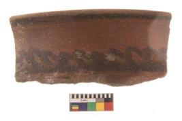 | Description / विवरण | Specimen of potsherd with decorative geometric painting, Type Black on Red ware . |