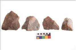 | Description / विवरण | There are n 4 utilized flakes; there are multi- directional irregular scar pattern on both dorsal and ventral face of the flakes. |