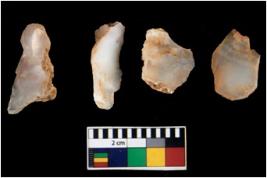 | Description / विवरण | There are n 4 of utilized worked cores. They show multidirectional irregular scar pattern. Two is tapering at one end and are elongated in shape. |