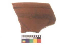 | Description / विवरण | Specimen of potsherd with traces of decorative geometric painting, Type Black on Red ware . |