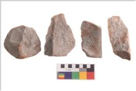 | Description / विवरण | There are n 4 utilized flakes; there are multi- directional irregular scar pattern on both dorsal and ventral face of the flakes. |