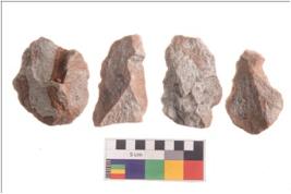 | Description / विवरण | There are n 4 utilized flakes; there are multi- directional irregular scar pattern on both dorsal and ventral face of the flakes. |