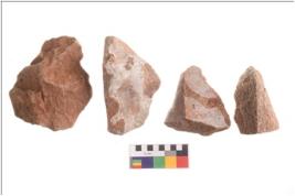 | Description / विवरण | There are n 4 utilized flakes; there are multi- directional irregular scar pattern on both dorsal and ventral face of the flakes. |