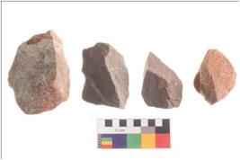 | Description / विवरण | There are n 4 utilized flakes; there are multi- directional irregular scar pattern on both dorsal and ventral face of the flakes. |