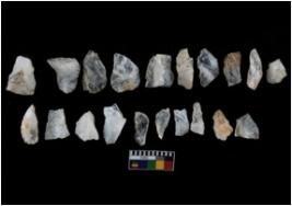 | Description / विवरण | There are n 20 of intact flakes. They have bulge of percussion and some are flat flakes. Few are elongated in shape. Some are debitage. |